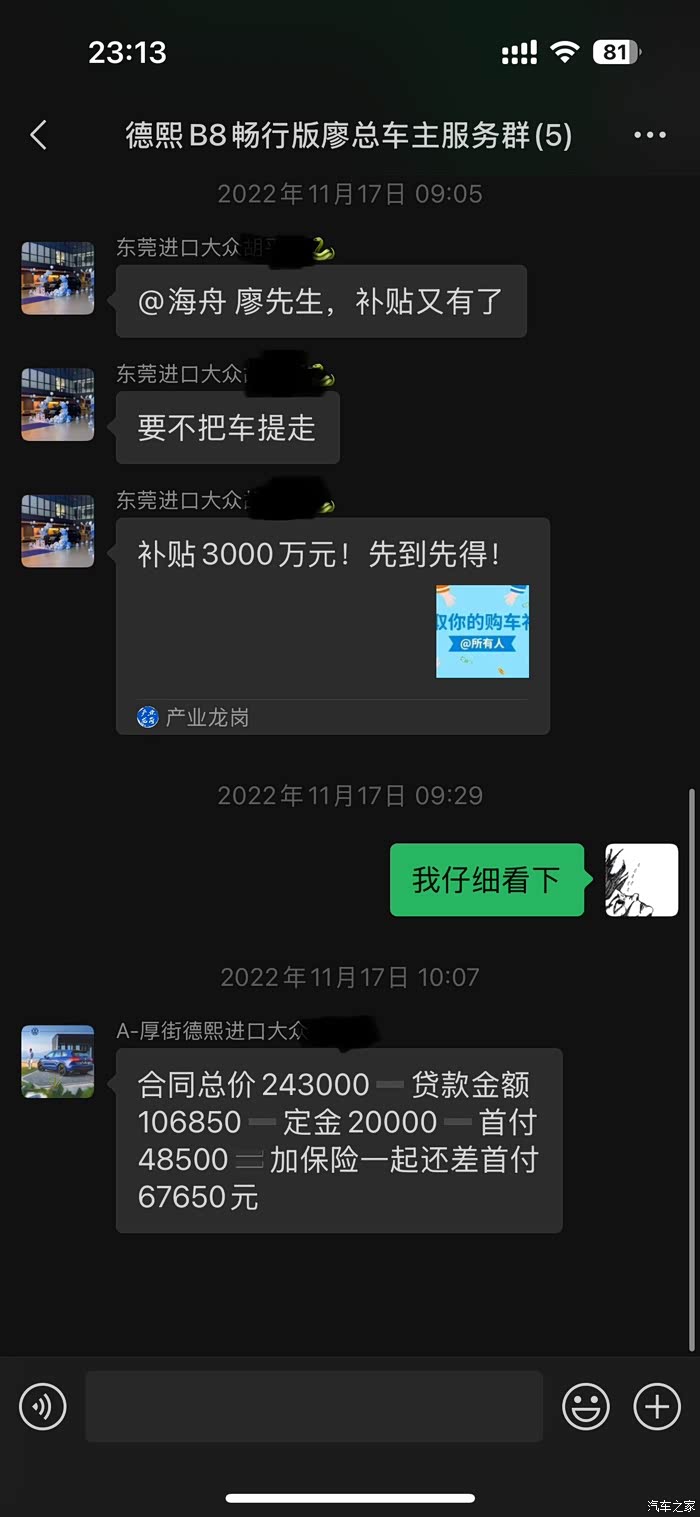当年2022年11月中旬蔚揽畅行提车价如何?白色,不是珍珠漆,车子都验了,库存车1年,送3年6次全保养,每次1500×6=9000。那时候应该还是疫情期间,政府提振车市,有补贴,1.2万。首付也给了,但是后面没提的原因是,自己的3年雷凌没卖掉,厂家金融方案通过了,首付一半,一年后付另外一半。压力太大。后面申请了另外的3年期方案,5年期方案,贷款都没通过。当年信用卡欠款还是很多。。造成现在还在心心念念,遗憾。当然,后面没多久,那家店也倒闭了。。后面把雷凌卖了,也有几年没买车了,天天骑一台小牛没觉得不便。也没再关注车子了,除了这一两年小米su7上市热度起来。才慢慢关注。。但还是不是自己想要的。只希望后面能把奥迪a4旅行价格打下来,不然可能以后会提一辆本田型格代代步吧。
