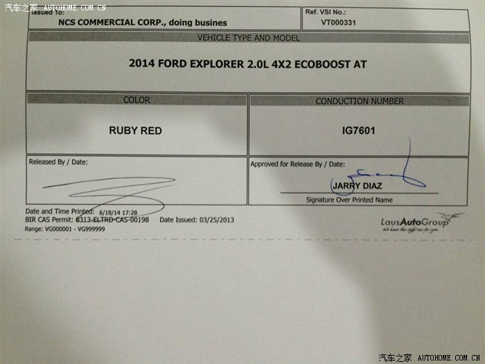 型号:2014款探险者2.0T;颜色:宝石红。下面,要到福特Dealer提车了,我先来个超华丽的双重分割线: