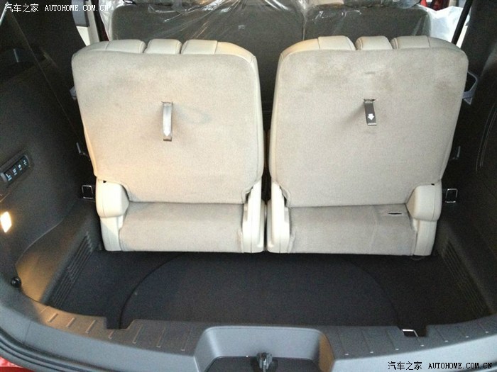 第三排---铺平,后备箱超大。左边的那些小按钮就是调节第三排电动座椅的。