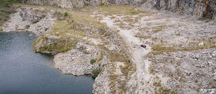 所以在选择出游目的地的时候也是选择了基本很少人知道,安全,又非常美的惠州潼湖蓝洞。惠州潼湖的蓝洞是一座花岗岩石矿坑,由数个面积巨大的矿坑组成,从1号坑到现在的6号坑已有30多年历史。蓝洞是无具体导航路线的,需要在谷歌地球用卫星地图定位查找,根据之前朋友反馈回来的信息,路程偏中度越野,对越野车的综合性能有一定要求,路上路况为砂石、泥泞、岩石相伴的复杂路况。从航拍图和卫星图上能看到越野路段延伸至蓝洞边。