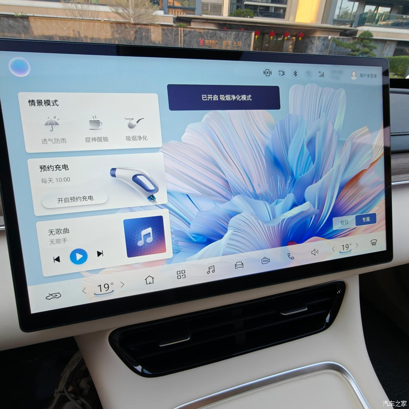 这套车机还有个很聪明的设计,设置了很多常用的情景模式,可以一键切换,自动把一些功能设置调整好,比方说赶夜路跑长途,可以用提神醒脑模式,空调、车内音乐会增大来缓解疲劳;在车上休息的时候来上一根,可以调成吸烟净化模式,车子会自动打开车窗并开始循环排除车内气味。