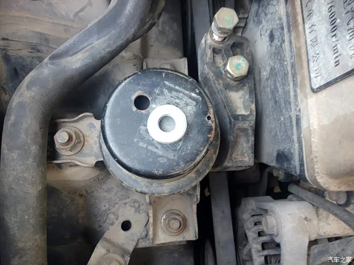 拆开空气格就可以看到机爪三个螺丝了,松开拿下,固定发动机的两个螺丝,松开拿下,三个螺丝柱每个垫三个垫片就行,注意发动机下面要用干斤顶顶着,不然发动机会下沉,
