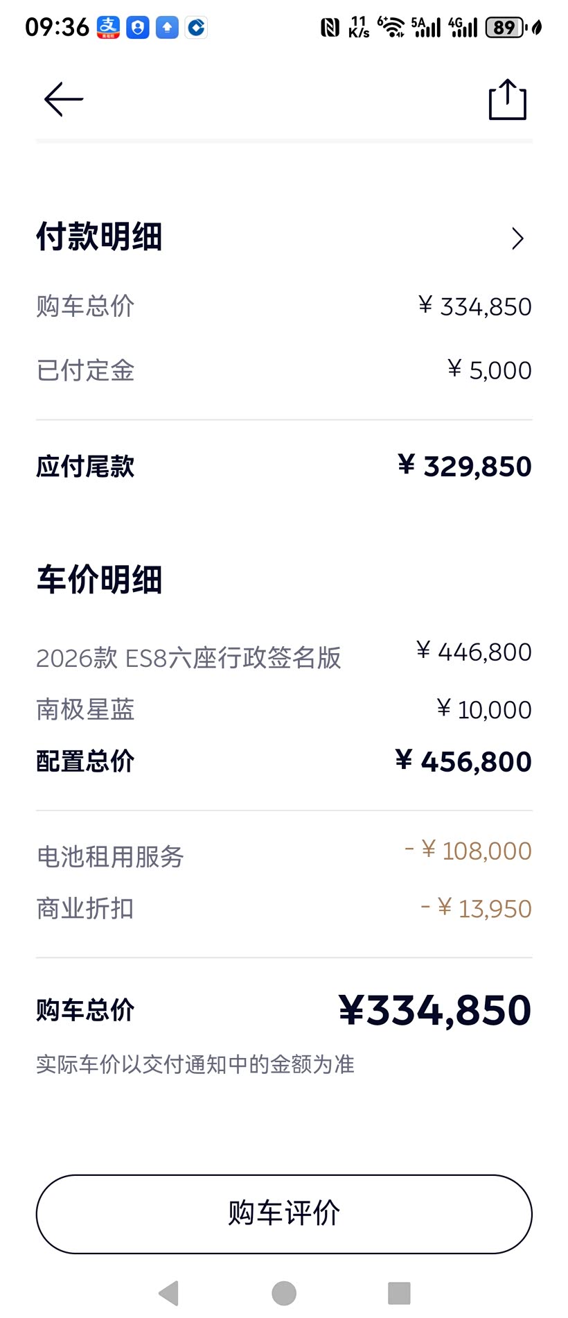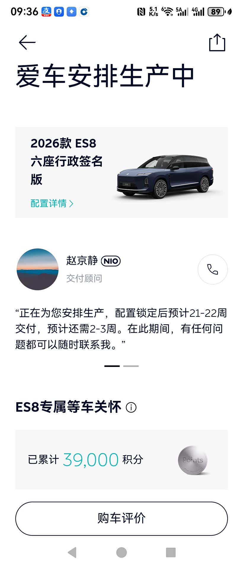 因购买其它品牌特转让蔚来ES8六座行政签名版,租电方案。颜色是南极星蓝,车是2025年9月底定的,购置税兜底,车辆开始生产了坐标西安市。需要的私信我。预计春节假后到车。