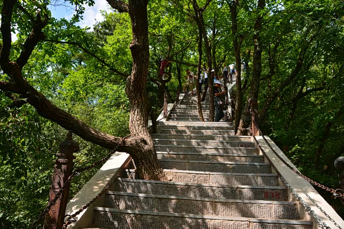 台阶上每隔五级就标个数字,大致记了下有一千五六百级,不太详细