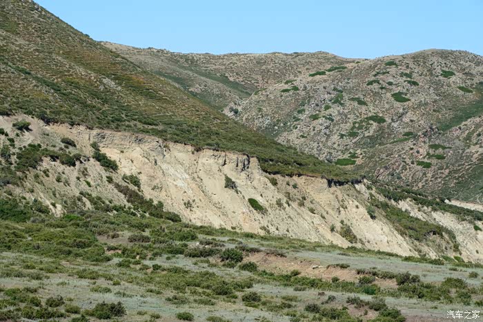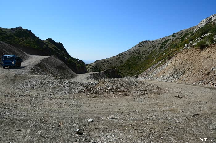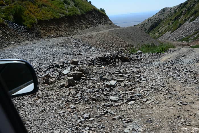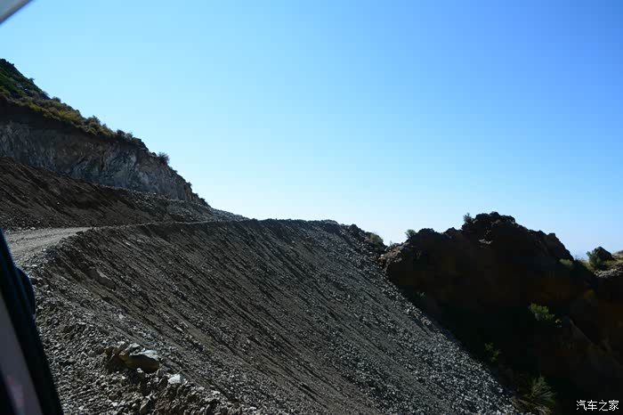 这是一个哈萨克人居住的村庄,语言无法交流,村中中年人都外出了,老嫂子叫来一位十来岁的小姑娘做我的翻译。从一位年近七十的老者口中得知,他知道地震遗迹中心的确切位置在深山里最高山的山顶上,目前正在修路,道路非常难走。说我的车可以上去,需给五十元带我们去。好奇心压倒了一切,那就走吧!走过了西藏山南地区及墨脱的人,倒要看看这路到底有多难走!带上老汉,顺着他指定的小路开到大山脚下,我把大萨置于auto 四驱模式,上山!丫头开车我是放心的,她打前阵,我做监军。从山脚到山顶,行走在开辟于断崖峭壁上近
