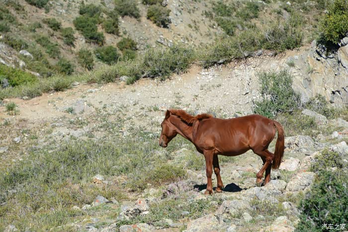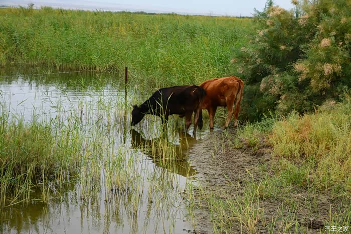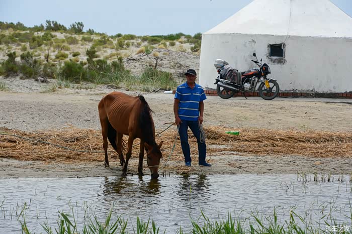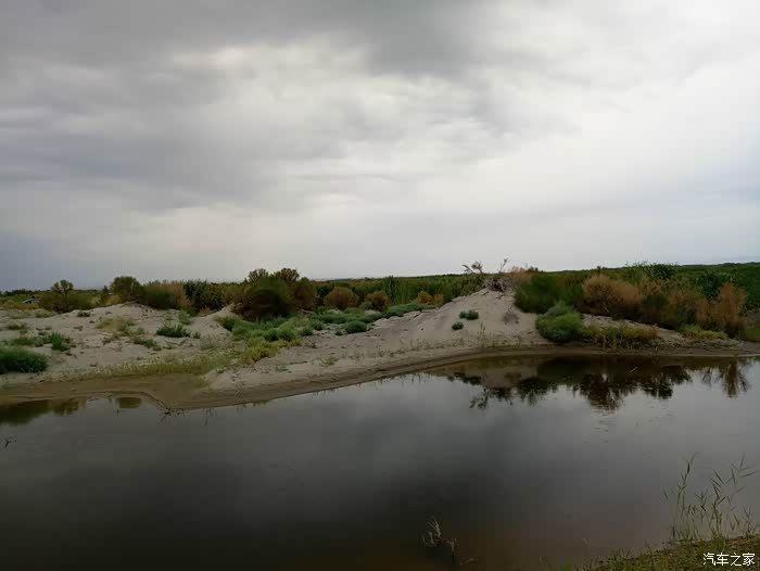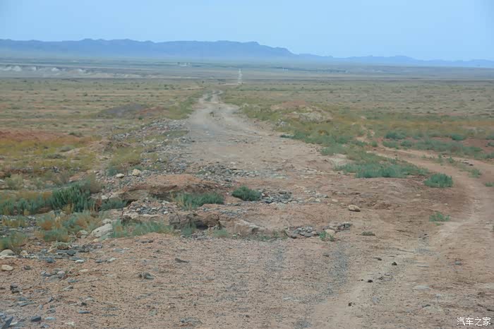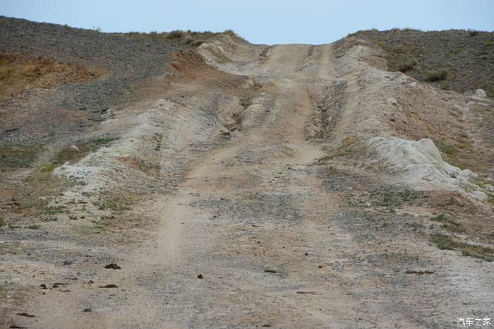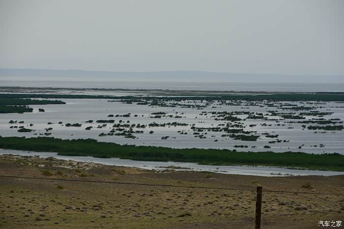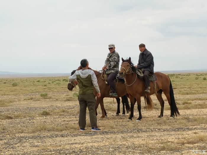 老天爷虽然不给力,但乌伦古湖依然是如此的美丽,环湖走一圈。驱车到湖的西南岸,没有了铺装路面。行进在有头无尾、崎岖不平的水毁沙土道上,越走心里越没底,油表指示在第三个格上,走了有三十多公里时,迎面遇到两位骑马经过的哈萨克朋友,打听到接下来的土路很长,也更难走。俗话说“无兄弟不越野”,左转顺着一条向西的便道行了有十来公里,终于走出了魔鬼般的水毁土路,上了318省道。在我下载的阿勒泰地区地图上,清晰地标有条环湖道路,当时想定是一条路况不错的道路,感觉有三格油足以跑完全程,谁知是条烂路。如果当时油箱加满了油,面对此烂路,我也有足够的信心跑下去,完成环湖观景的心愿。