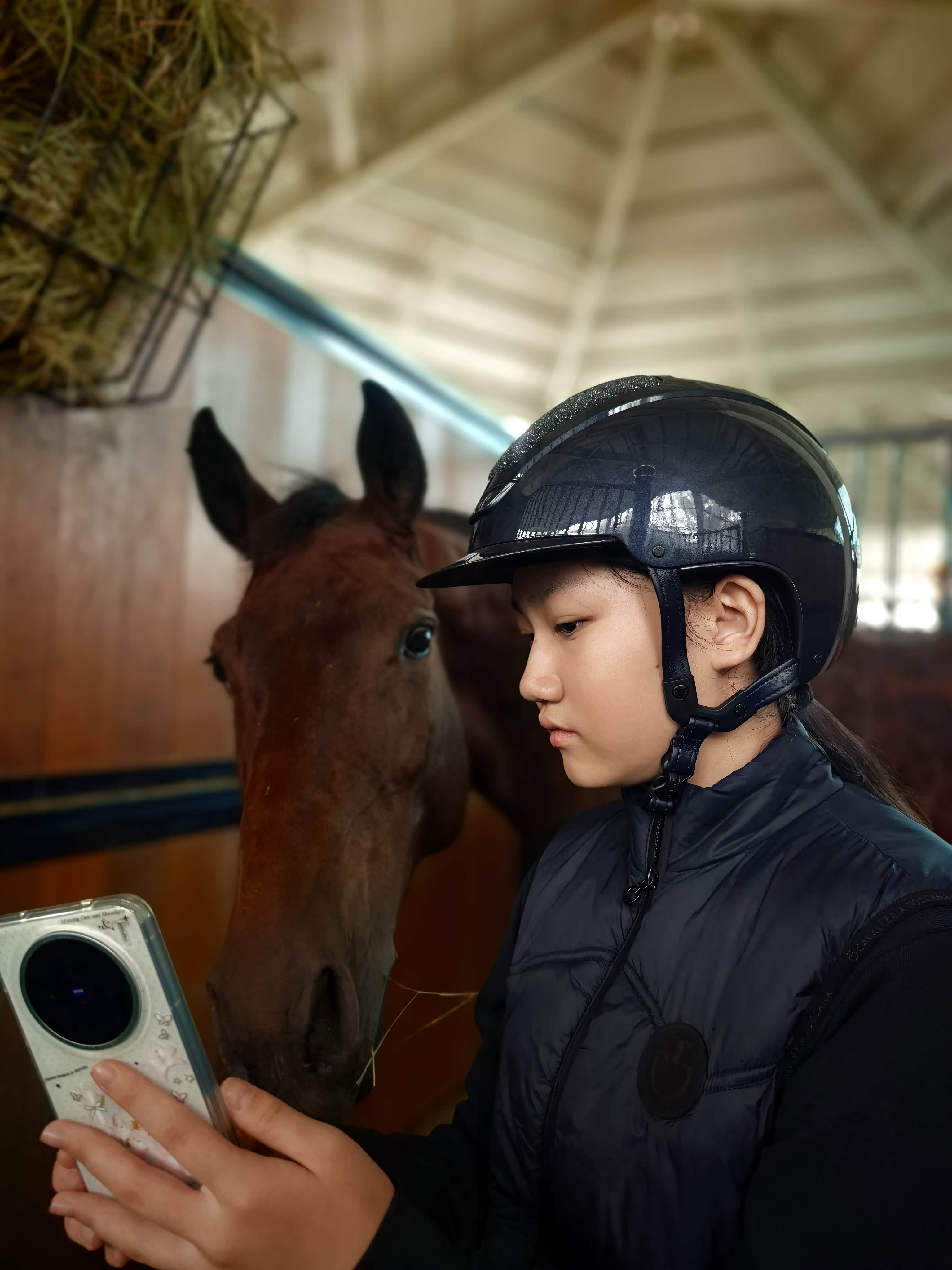 马似乎在看手机屏幕呢