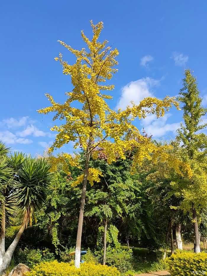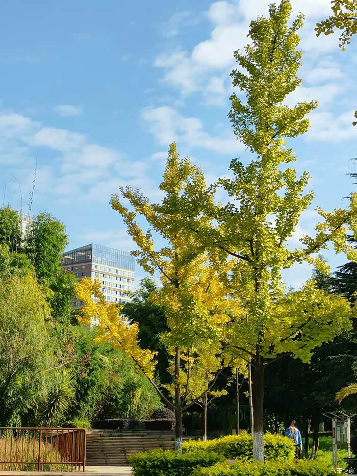 秋天真的是到了,车窗外的银杏叶已逐渐变黄。