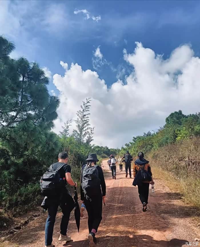 徒步的早上,开车出门和大部队汇合,出门有点早,路上天气微凉,但阳光灿烂,心情很美好……