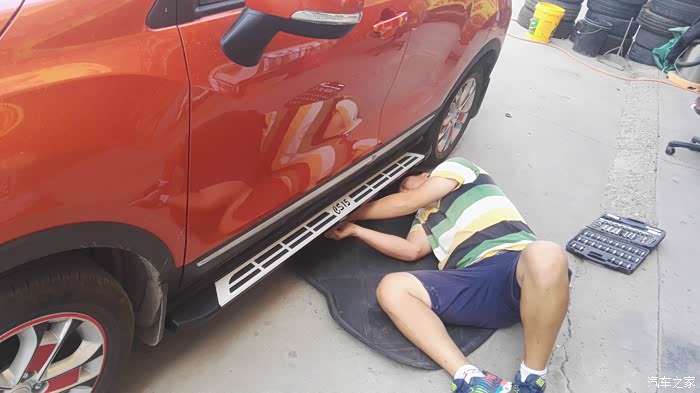 像挡泥板,晴雨挡,轮毂贴纸这些小东西都弄上了,看着还行,但是总觉得缺点什么,缺点什么呢???对着爱车想了半天,想起来了,咱这是SUV呀,SUV怎么能没有侧踏板呢?想到就做,先禀告夫人,把自己的想法跟夫人原原本本的说一遍,然后又经过夫人的一顿批评教育,最终夫人还是同意了我的请求