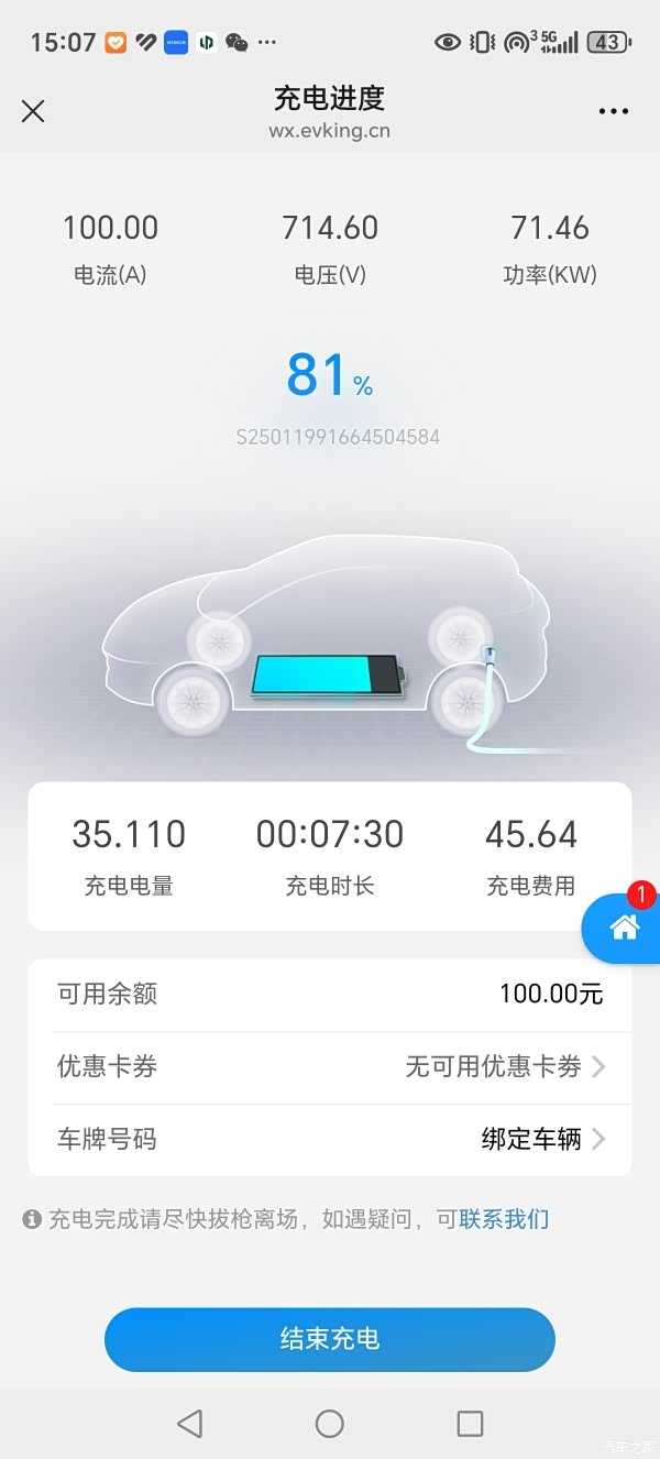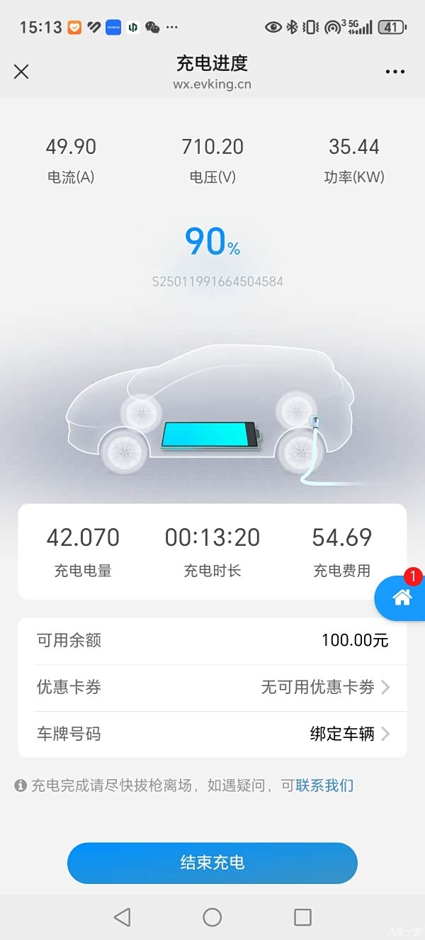 13分钟充了60%电量,这个充电速度很快啊,比我的混动车快多了,我这台充电功率最高只有41千瓦