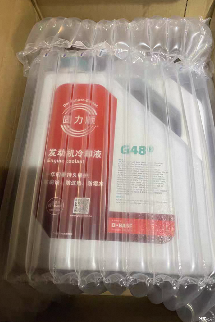 我选的是巴斯夫的G48,看好多车友都换了这款,当然也有更推荐G30的,个人认为在限定时间内更换都是没有问题的。以广大车友的经验6L是足够的,再配一桶纯净水或者蒸馏水,我的车因为三年没换过了,准备 了8L ,多余的用来清洗一下。