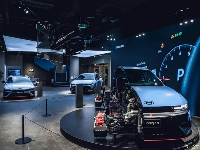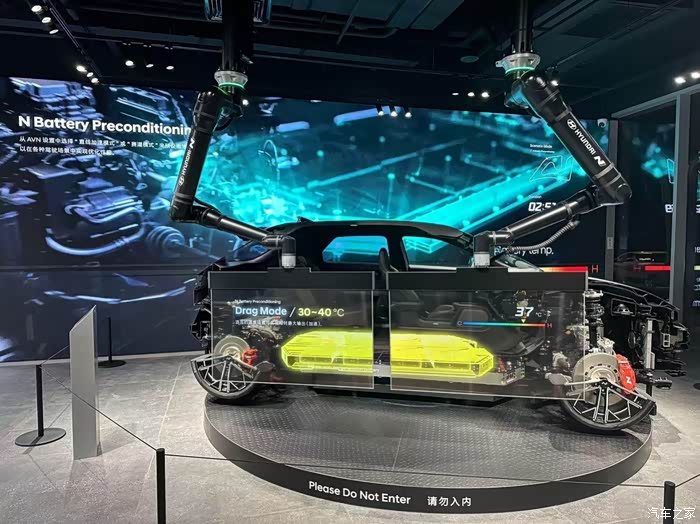 刚刚进入体验中心,最吸引我的就是一台解剖车的展示,而“惨遭不幸”的就是我曾经驾驶过的IONIQ 5 N,但是这不仅仅给我们展示了这台车的内部结构,其实这个展区叫做360°革新实验室,它会提供一个动态的演示过程。而整个过程主要就是给我们展示IONIQ 5 N非常特别的产品点。