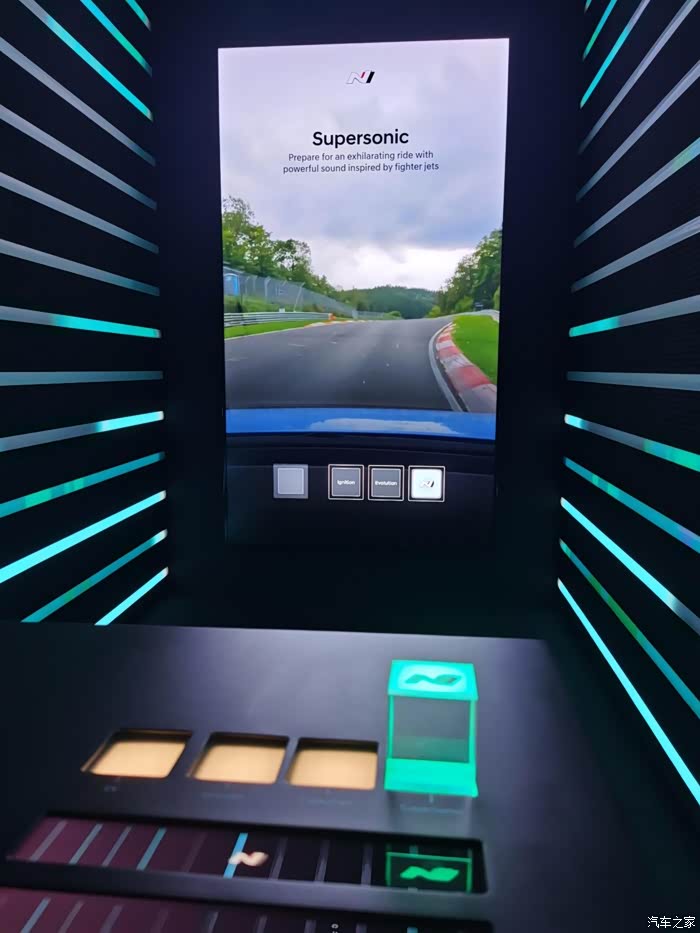 此外,还有一个充满科技感的声浪展厅,那这里可以感受到N 模拟声浪系统的三种不同声浪以及e-N动力换挡模式的真实反馈。这也就让我能明白,为什么一台电动IONIQ 5 N除了不俗的驾驶质感,还有油车的视听感受。