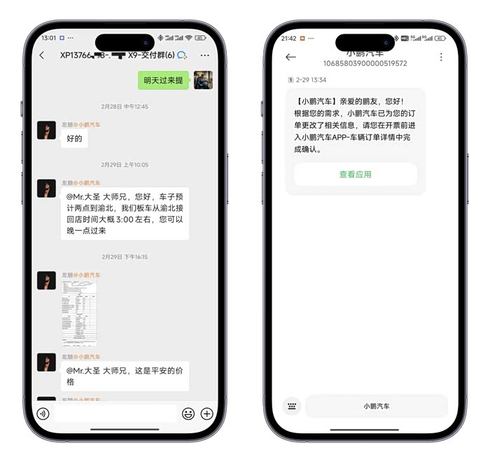 随后,小鹏的交付团队开始与我紧密沟通,电话、微信不断,为我提供了贴心的后续服务。他们的专业和热情,让我对这次购车体验更加充满了期待。