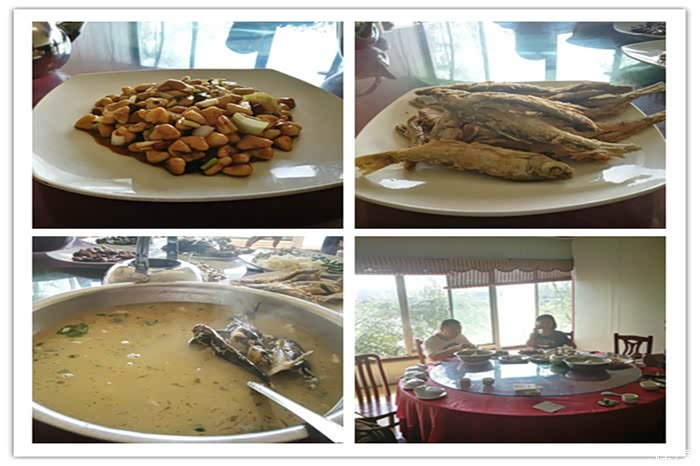 午饭是玟子姐提前安排好的景区外边的某水上渔馆,由于小白鼠和聊城1979等人急于赶回家,吃饭的只有我和疯狂泰山和漫兄四人了。