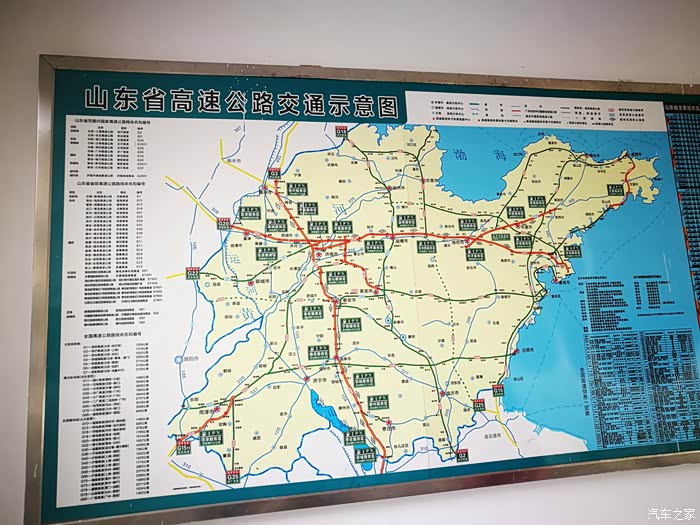服务区拍的一张山东省高速公路交通示意图,山东的公路在全国来说里程应该是数得着的。