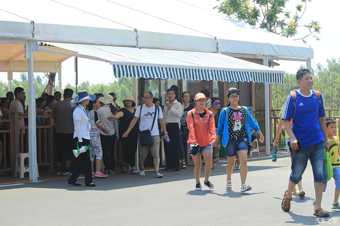 要去湖心岛必须要先坐电瓶车然后坐游船,观光车乘车区已经等满了人,我的个天,足足有上千人在等,加上天气炎热,挥汗如雨啊!