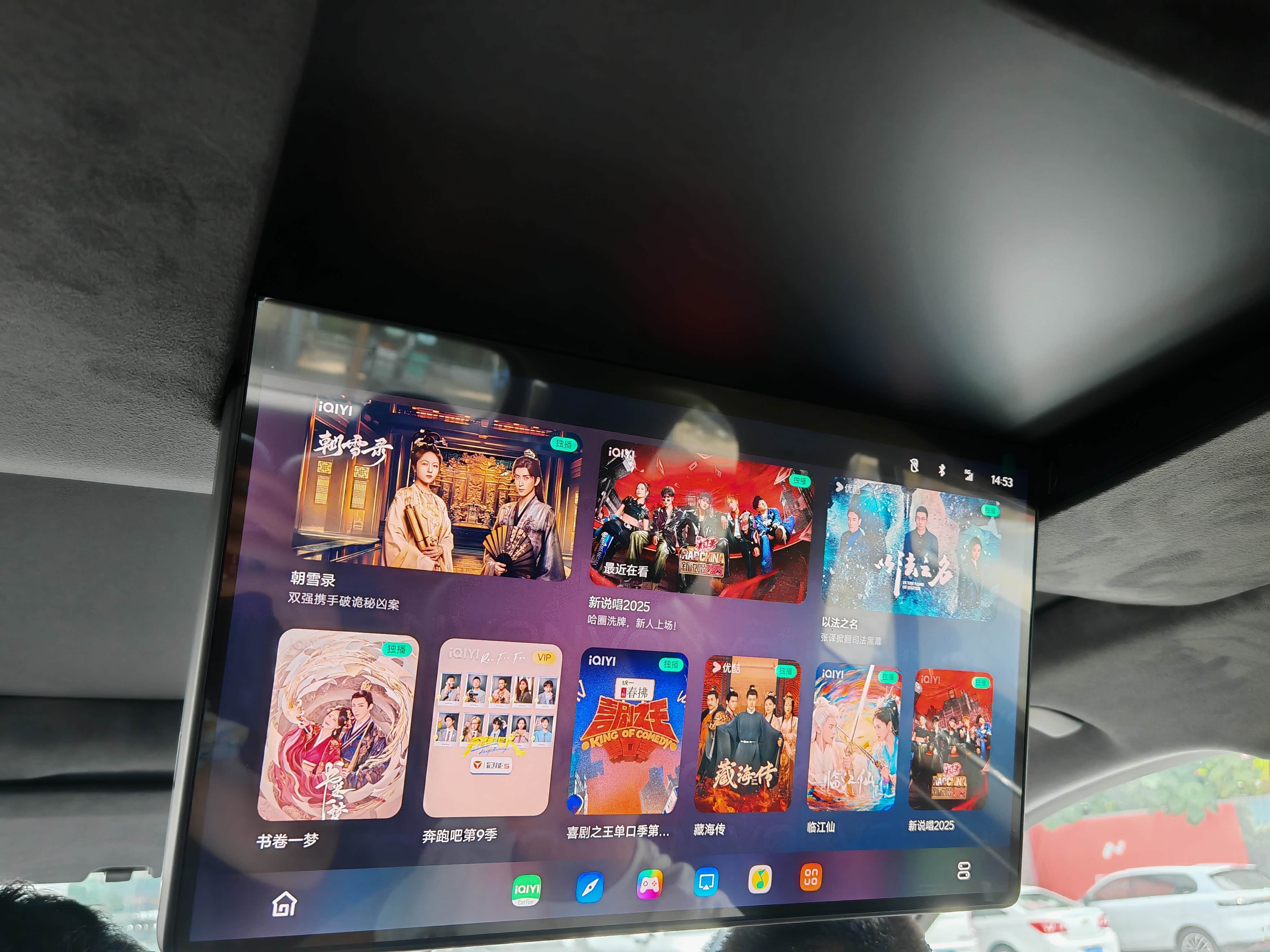 35英寸AR-HUD,导航信息直接投射在眼前, 非常方便,双50W快充,怀档,后排吸顶屏是哄娃神器,带孩子出门再也不用担心他们吵闹了,8 英寸小屏还能调节空调,关键是适合老人和小孩的电动脚踏,上下车非常方便。