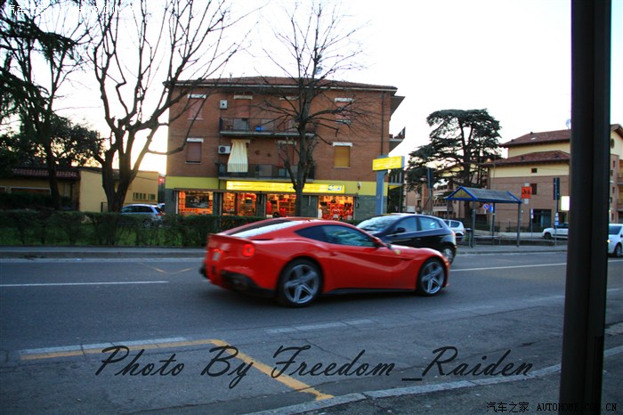 不得不说这辆FF,声音太震撼了!虽然工厂附近的路上法拉利非常多,经常在你面前油门到底呼啸而过,声音非常暴躁,但跟这辆FF比真是差太多了!这辆FF启动的瞬间我以为什么东西爆炸了,声音大的夸张,之后持续的闷响让我以为是私人飞机,直到她缓缓从工厂门口驶出才知道声音属于这台FF。这还不是F12 Berlinetta,也不是LaFerrari,但已经足够震撼了!
