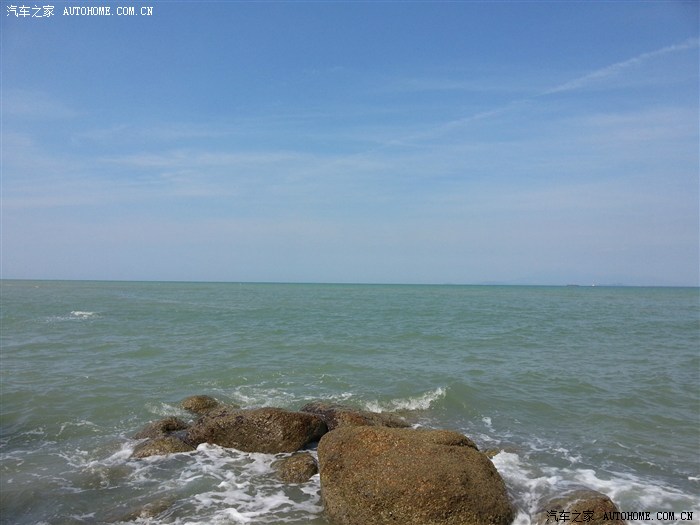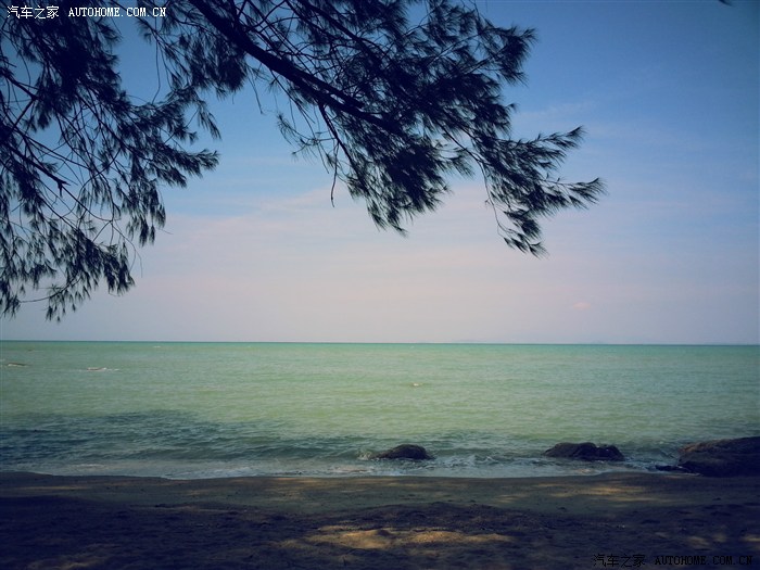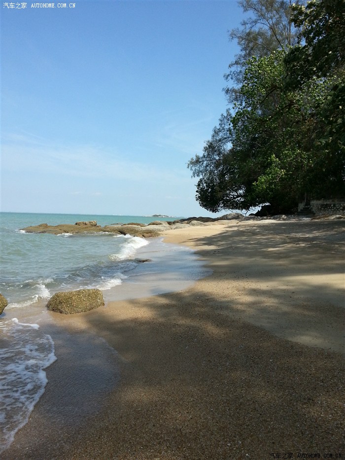 途中见到一个海滩,没人,但沙比较粗,下来玩下水吧,哈哈~~