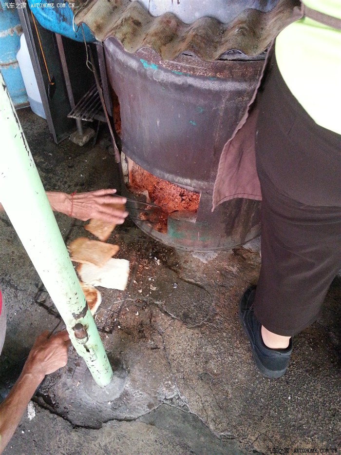 烤面包的师傅是个阿姨,不会说中文的,就是这样放进去锅底下烤,没添加剂,保证新鲜,口感松脆!