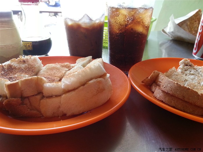 完成品登场,再叫上杯冻咖啡+可乐。这里喝啥都放冰,冰都好便宜,东西不放冰不好喝,不能接受的孩纸,只能喝热的啦!!面包有两种,我各叫了一种,都很好吃,价格又便宜!还是那句,这里吃东西,根本不用管他多少钱,因为便宜,而且他们都不会多收你钱~