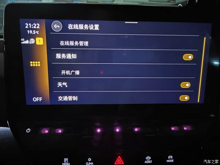 4.重新设置网络,在车机主菜单中找到设置,进入在线服务设置,关闭在线服务,等待10秒后再次打开,以重置网络连接。