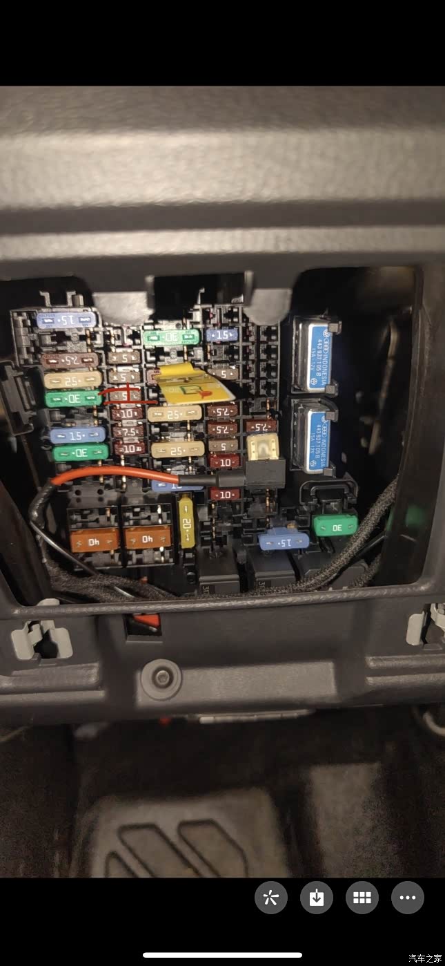 7.拔保险丝,连接网络的保险丝在方向盘下方的保险丝盒里,打开保险盒,拔掉第二排第三个重新插一下,然后重启车机。