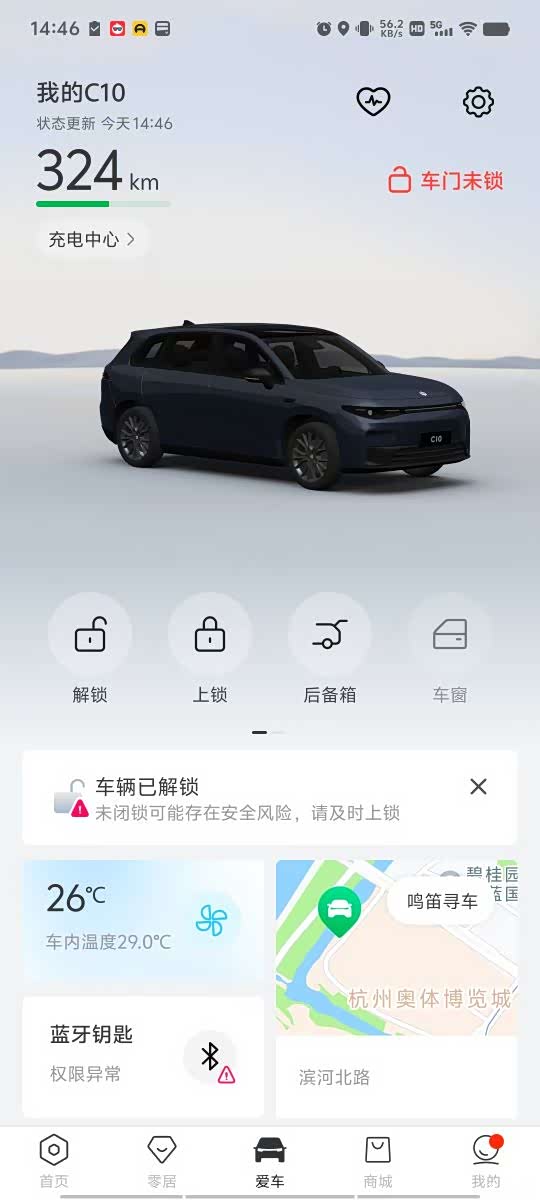 实测过一次高速,续航还可认的。充满电605公里,从衢州市区到杭州奥体中心,实际行驶路程218公里,其中,高速193公里,城区25公里,到达目的后,还剩余续航324公里。高速上速度100-110之间。