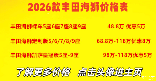 作为一款原装进口的高端商务MPV,丰田海狮以3.5L V6自然吸气发动机(最大功率282马力)与6速自动变速箱为核心动力系统,搭配3860mm超长轴距,提供宽敞稳定的乘坐空间,是商务接待、企业通勤与高端家庭出行的优选。