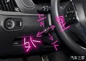 这个控制杆操作起来和灯光控制杆非常类似,也是四个方向,上、下、里、外(上=右转灯方向,下=左转灯方向,里外就是远近灯变光方向)另外在杆头上有一个SET按键