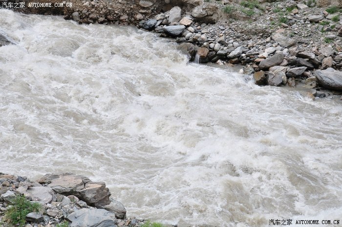 过了通麦到排龙,出了点状况:NND,过了排龙后一涉水路面,水很深,水下情况不明。按照正常过涉水路面的经验摸索前进,速度稍微快了一点,哐当一声响,左前轮轮胎毁了。