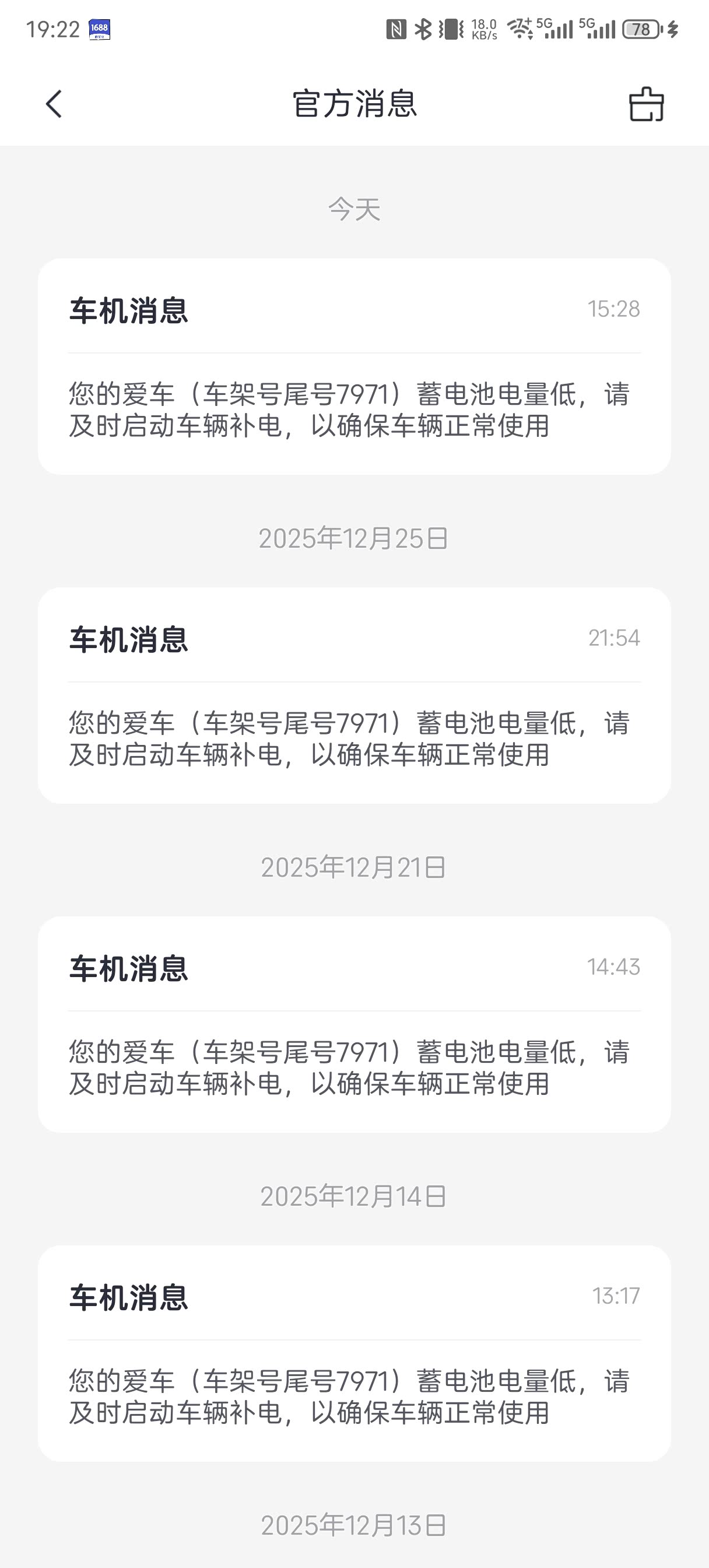 之前因为它那个蓄电池是因为车辆电池了,谁知道是小电瓶,小电瓶在不启动车辆的时候,它会自动的慢放电,会缺电。
