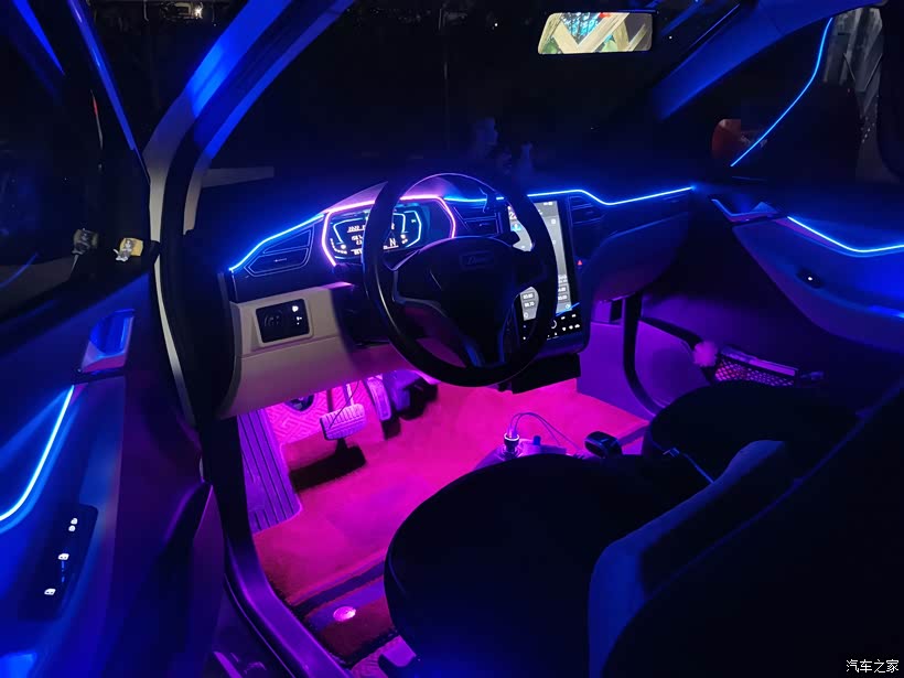 自己加装的氛围灯,安装难度还是相当大的,随然是那种对于其他车比较简单的卡在缝隙里的超薄灯条,但是芝麻这个车所有的缝隙都很小,卡个纸还行,卡灯条就别想了,所以只能把所有需要卡灯条的位置的内饰板拆下来打磨