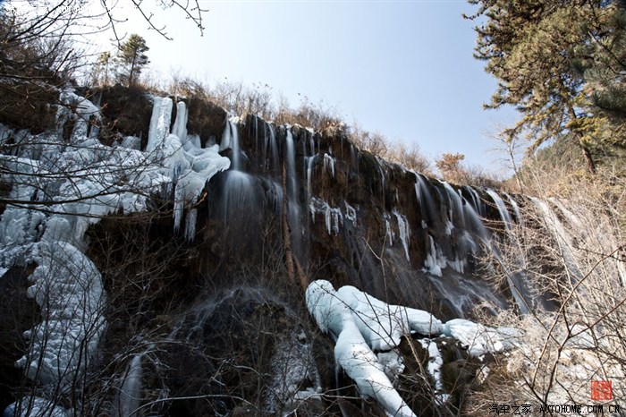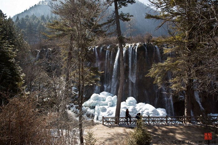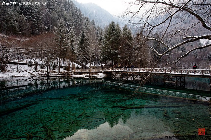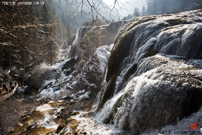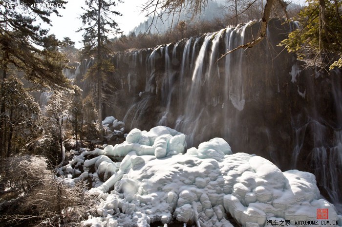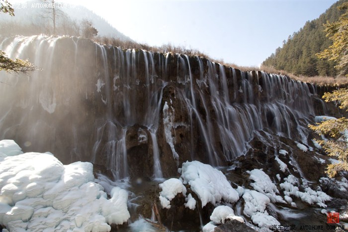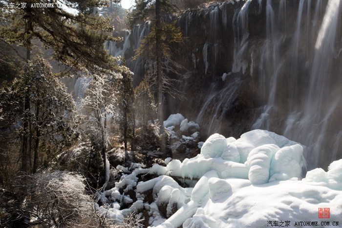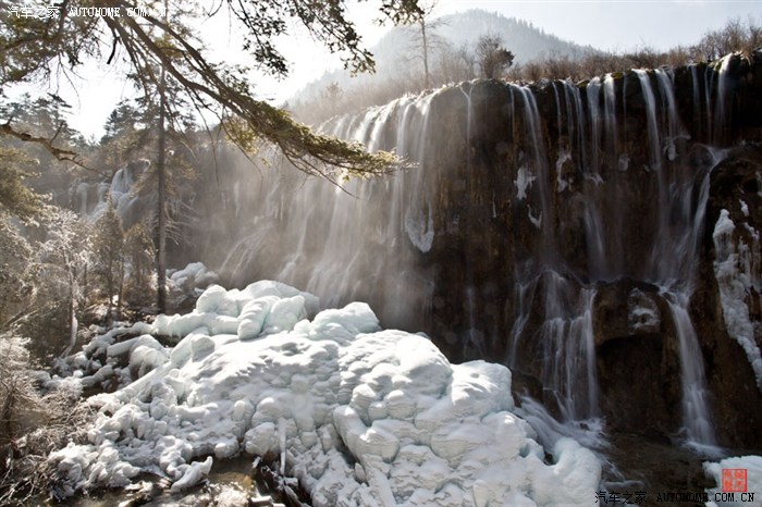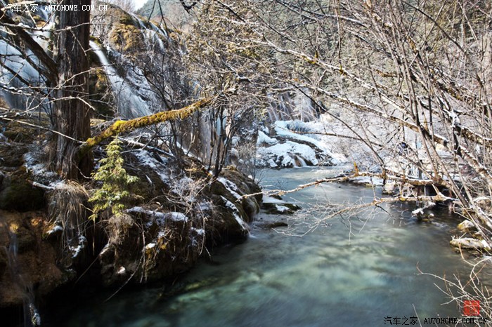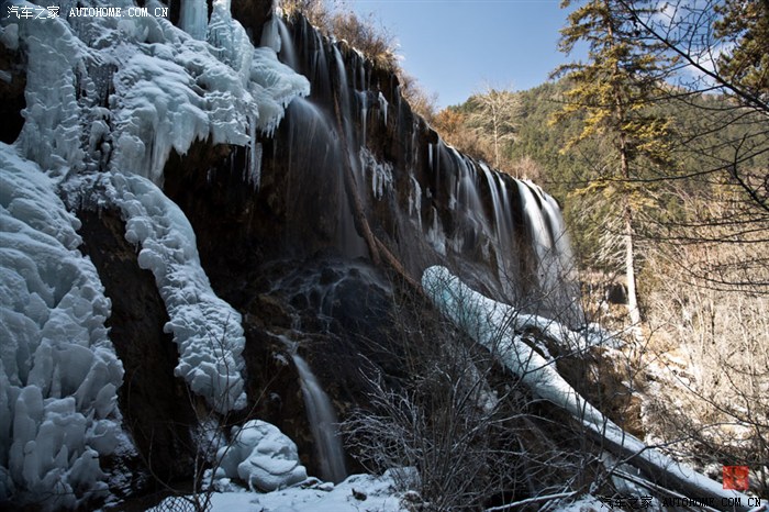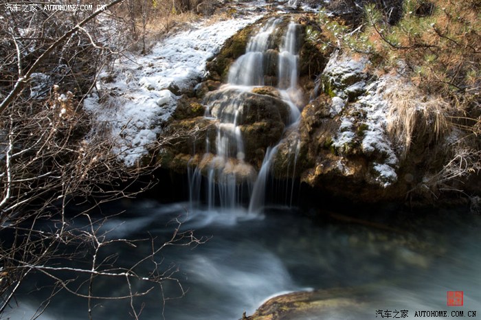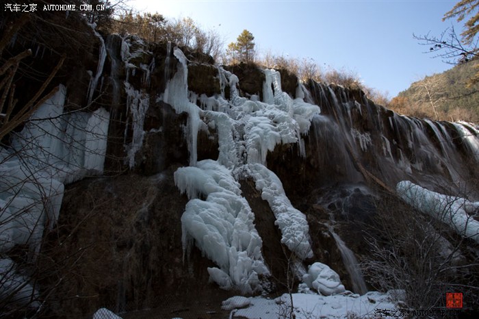 这条线路比汶川方向难走,“杯具”的是到黄土梁附近遇到了下雪,快到冰雪路面时,被路边的村民拦住,极力说服你用防滑链,原来他们是推销防滑链的。看着路边好几辆三马子上满载的防滑链,不得不佩服村民们的经济头脑,路边车辆逐渐排起了长队,车友们不知所措纷纷下车交谈。我拦下一辆刚下山的奥迪Q5,了解山上的路况,答曰:越野车可以通过,轿车费劲。与太太商量,如果绕行松潘县要好几百公里,路也未必好走。这时一辆当地牌照的骏捷FRV没用防滑链走了,我车上备了一幅防滑链,于是谢绝了村民们的好意,鼓足勇气冒险上山了,我的车是手自一体自动挡变速箱,便使用手动模式,档位2-3档,车速控制在30公里/每小时左右。关掉音响,集中注意力观察路面,谨慎驾驶。在雪地路面行驶还算顺利,遇到会车时及早靠边让行,偶尔点一下刹车,车辆都有一点顿挫的感觉,为了减轻太太的恐惧感,努力控制好车辆的行驶姿态。就这样有惊无险的到达了半山腰,突然发现前面过水路面结了大约30米的冰(路边停了辆客货车),半幅通车,我准备上冰面时对面来了3辆车,没办法只好停车让行。当我启动车辆准备通过冰面时“杯具”发生了,驱动轮打滑无法起步,这时从客货车上下来三人向我摆手,手里提着防滑链说必须装防滑链,我告诉他们不用,在上冰面时我观察到路边的雪下面是沙子,试着挂上倒档,倒档可以用,于是将车辆倒了1米试着起步,还是不行,再倒了几米终于成功起步了,在路边三个“好心人”的注视下我战战兢兢的通过结冰路面。遗憾的是这段行车记录仪记录的映像被覆盖了。