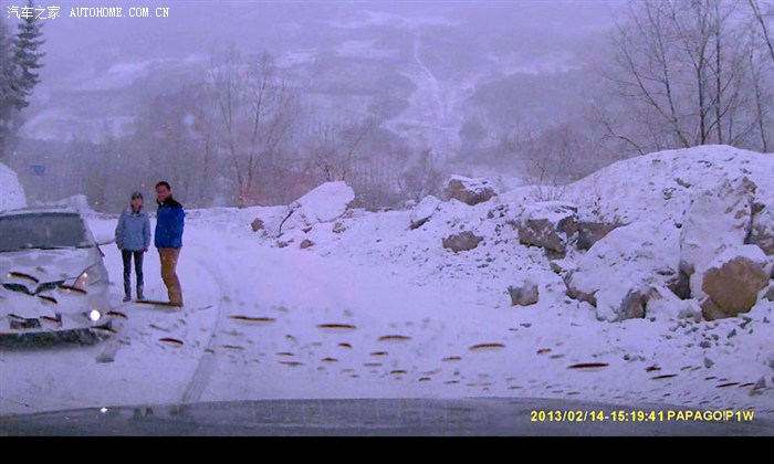 原来是一对小情侣,车辆在雪地上起不了步,看着他们孤独无助的表情,想想今天是情人节,真心想帮帮他们,可是;这种路况我们也是爱莫能助,只好默默的祝他们好运!