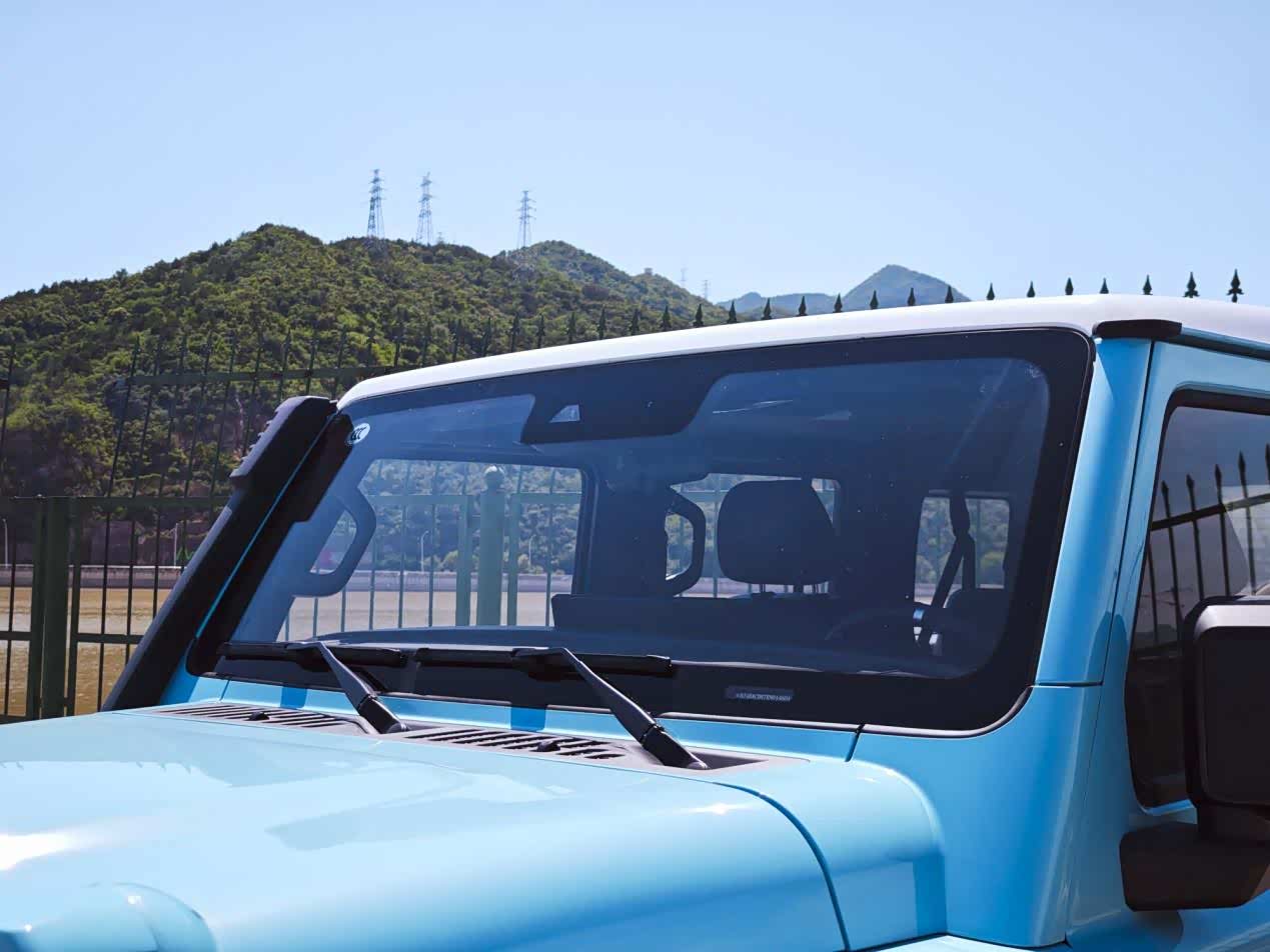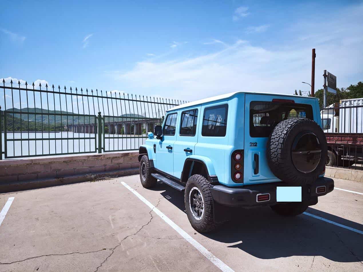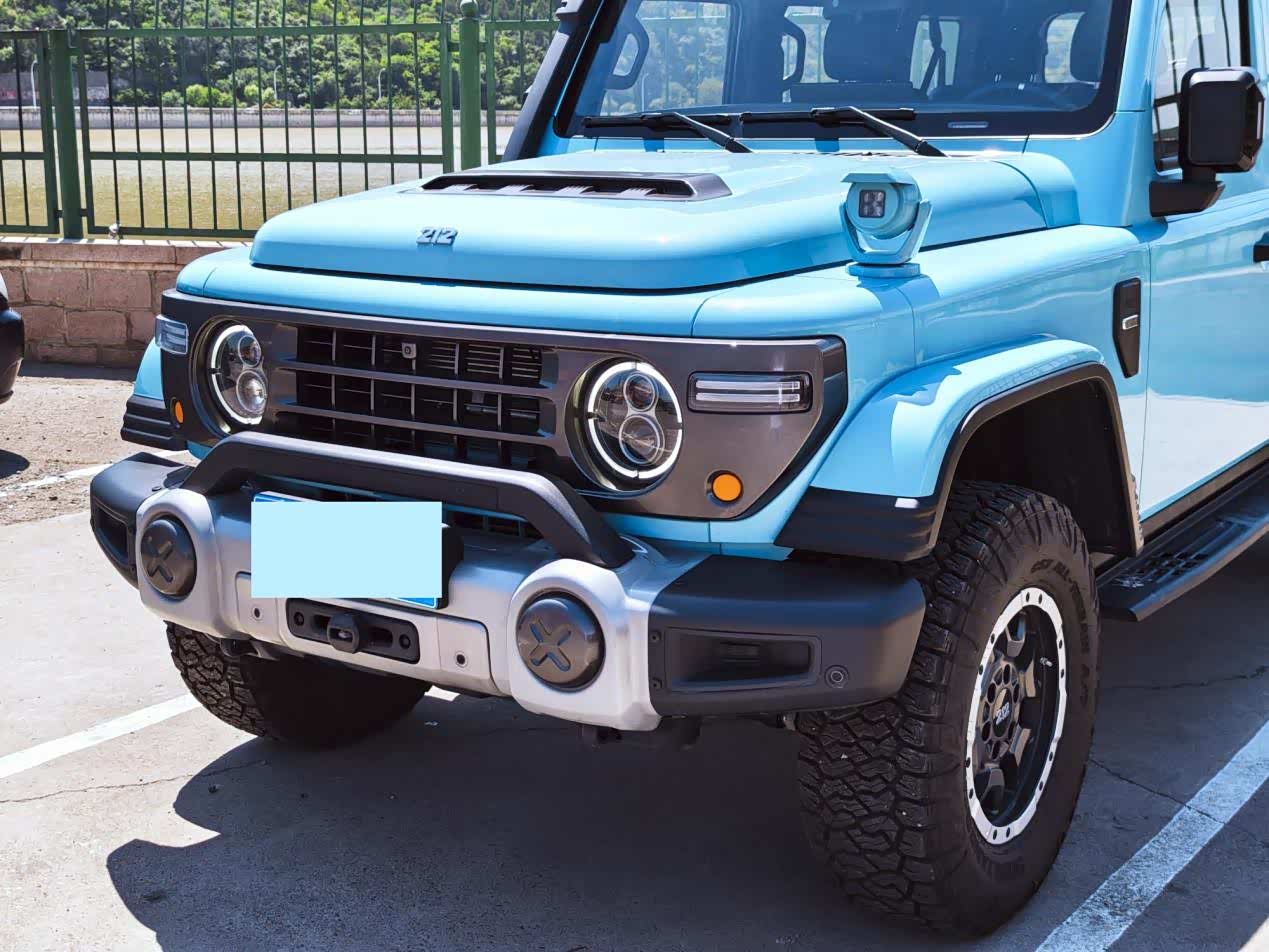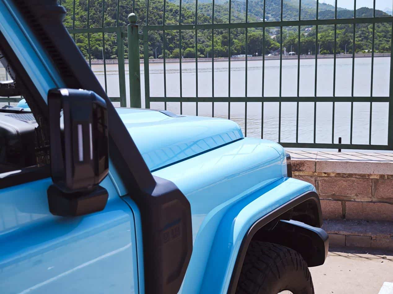我这台长风版,外观设计很出彩。前脸犹如猛虎扑食,威慑力很强。三道横杠式进气格栅如兽牙般凌厉,黑色网格覆盖其间,圆形复古大灯仿若兽瞳,内嵌“8”字形灯带。前保险杠向外突出,仿佛随时准备撞碎阻碍;引擎盖上的防空灯与方形日行灯,是荒野征途的明灯。