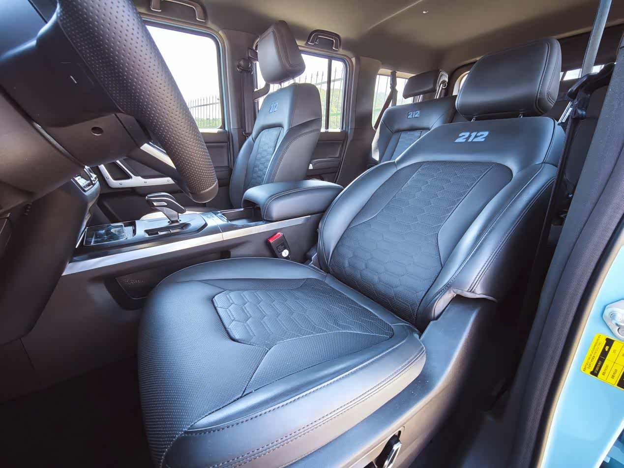在这辆硬派越野车上,每一道线条都是征服的宣言,每一处设计都是野性的诗篇。每一处棱角都是对越野精神的注解——离地间隙256mm的底盘只是基础,还有涉水深度910mm的从容穿越,前后电控差速锁与智能分时四驱的配合,让陡坡、泥潭、岩壁皆化为坦途。