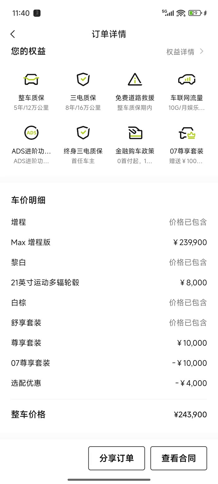 2024年10月20日订车,增程MAX,28日提车(销售说加4000换轮毂有现车,所以提车比较快),截止25年8月31日,累计行驶30232公里;