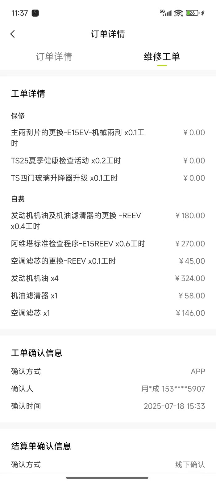 4、4s店的保养及维修价格真的有点坑,但是不在4S店又没有质保,这个不多说了,首次小保养1158(店里说这个是做活动给的8折后 的);这个小石子碰坏的冷凝器,店里备件要850,工费1800多,我从淘宝买的原厂件450,安装找了一个汽修厂,工费300。4S店把备件东西翻一倍也还好,只是这个工费翻6倍确实真心是有点坑了。
