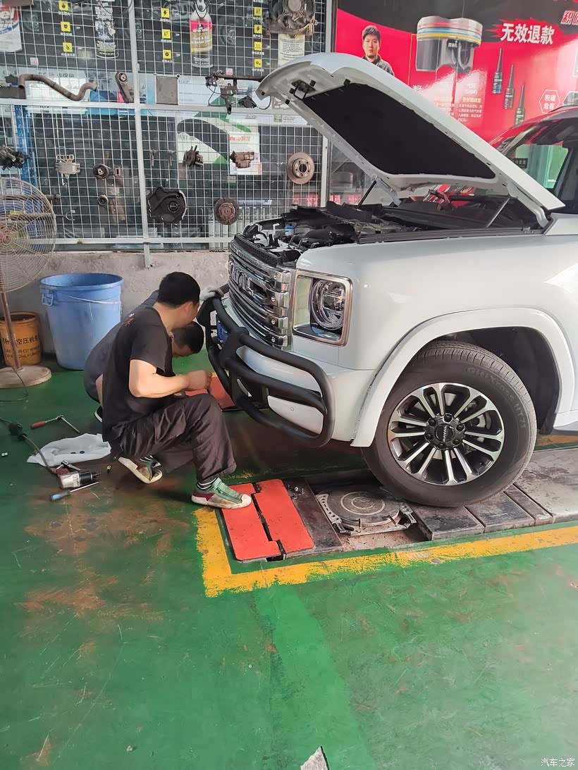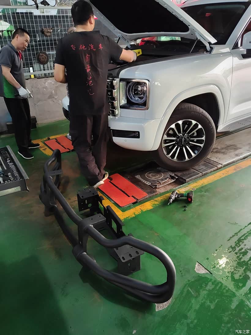 无损安装,速度很快,两个师傅,大约一个半小时就完成了,中途还给另外两个车简单维护了一下。过程:需要拆除两侧前轮眉,然后拆原厂塑料杠,原厂防撞梁,溃缩模块,然后再装绞盘架(同时充当防撞梁),绞盘架是5毫米厚的锰钢,比原厂的还要厚一半(缺点太硬,不容易溃缩)。绞盘架固定好后,还要装四根连接杆,然后原厂塑料杆归位,再把防撞梁固定在连接杆上面即可,最后把雷达装在保险杆上。非专业写手,整不来图文系列,大家凑合看,过程很简单。有疑问留言,我会一一解答。