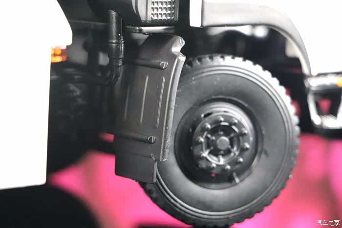 车尾的整体做工我还是比较满意的,尤其是它的尾灯,里面的灯碗做工都能看的一清二楚!很多同比例的模型把尾灯做的很垃圾,导致整个车的做工大打折扣,也是非常不值当的。车头上的帆布可活动绝对是同比例模型的一大亮点,也是一大创新之处,车后盖的两个反光条特别逼真,车胎的纹路细节特别真实。***开头说到过,这个模型的重量非常沉,所以为了防止轮胎外八,我大多数的实际都是把车模装到盒子里,这样不但防止了轮胎外八尴尬的情况出现,还防止车模落灰,话说车模展示盒也没有这么大号的吧!车的内饰质感蛮棒的,中控台上的各种摁键有突兀感很强,方向盘也可以像18比例模型那样,随前轮转向。
