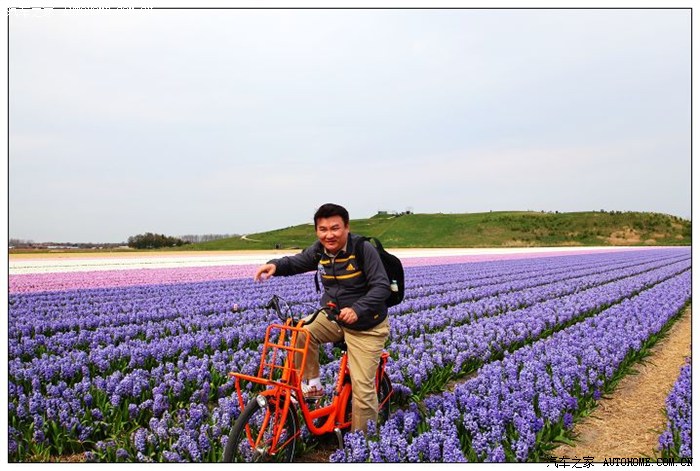 去公园之前先租一辆自行车,骑行是游览花田最快乐的方式,沿着弯弯曲曲的绛红色自行车专用道缓慢骑行,春风拂过,滚起一道道纵横几十里的花之彩浪:红波、白浪、黄涟、紫漪,美得叫人无法呼吸,艳得令人睁不开眼。从库肯霍夫开始的骑行设有从5公里至20公里不等的5条赏花线路。
