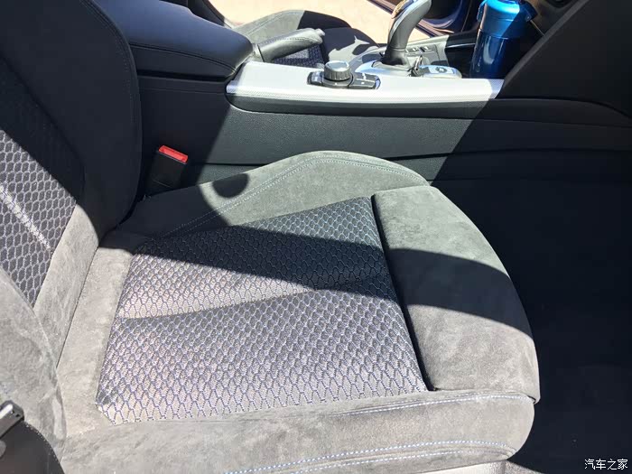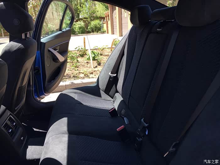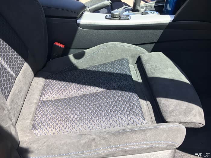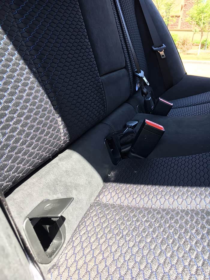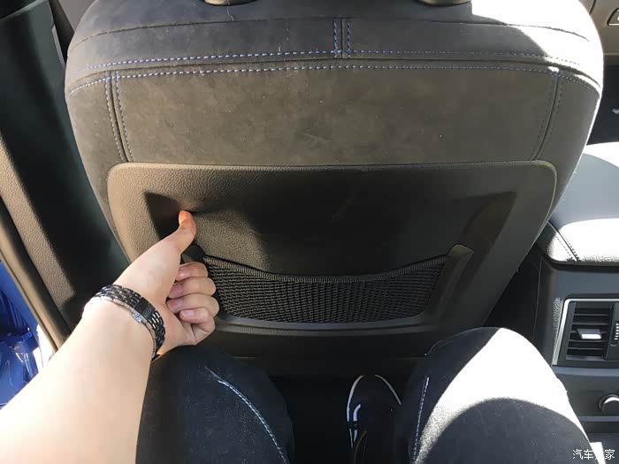 4、相比真皮,个人更喜欢翻毛皮+织物座椅,摩擦力大温度不冷不热刚刚好。前排有腿部承托,跑高速很舒服,腰部承托不足,开久了腰会难受。后排座椅长度足够,腿部承托好。