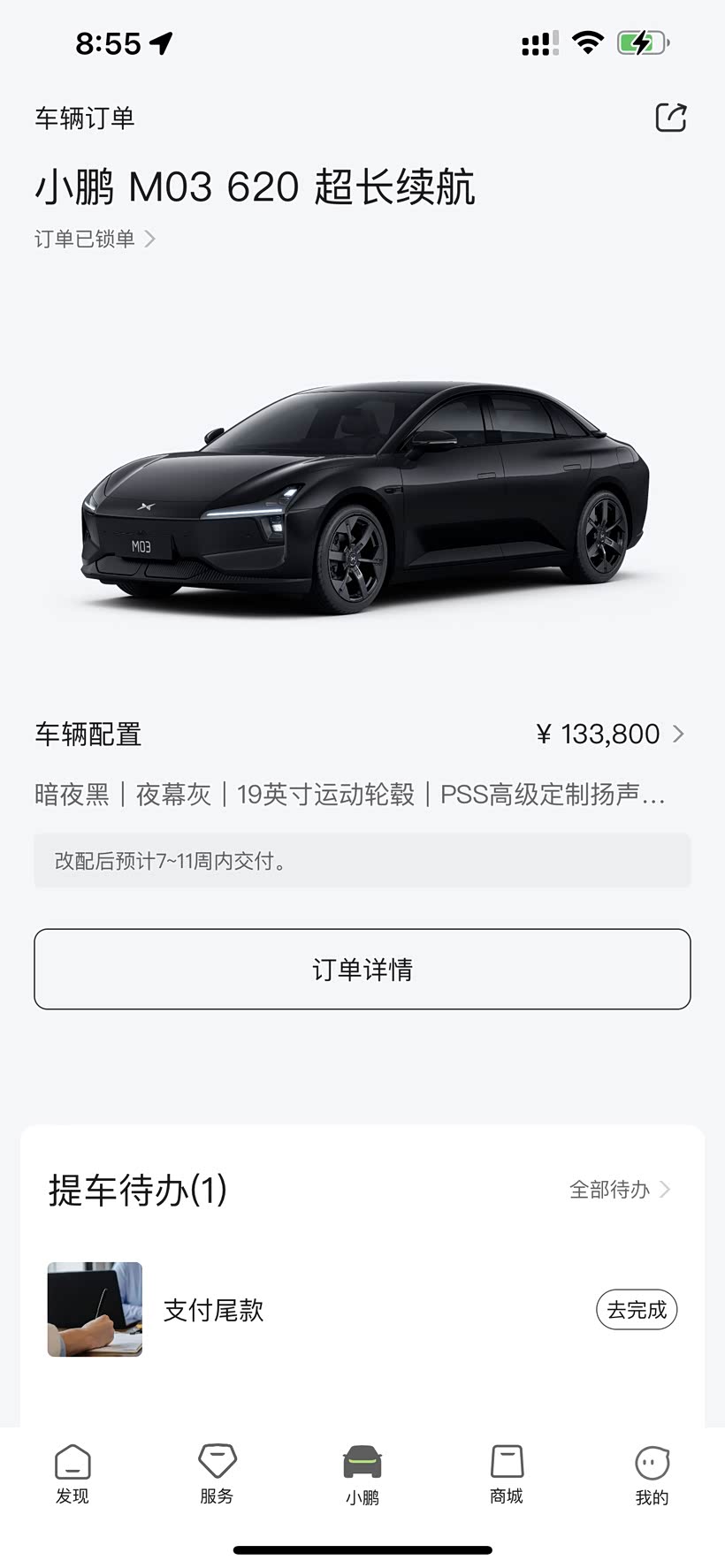 订车后需要等7-11周,漫长的等待时间,8周小鹏还给我送了5000积分跟雨伞,年前还送了888度电卡(好评)
