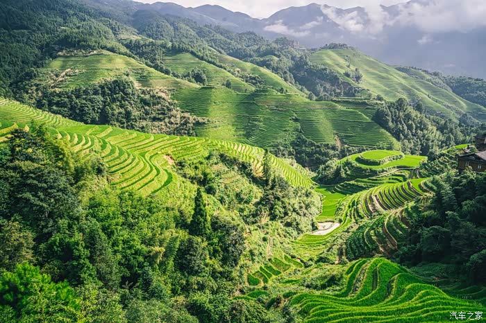 龙脊梯田始建于元朝,完工于清初,距今已有650多年历史。龙脊开山造田的祖先们当初没有想到,他们用血汗和生命开出来的梯田,竟变成了如此妩媚潇洒的曲线世界。在漫长的岁月中,人们在大自然中求生存的坚强意志,在认识自然和建设家园中所表现的智慧和力量,在这里被充分地体现出来。千层天梯观景台上可以看到层层的梯田似千层楼梯一样直砌云端。站在观景台上放眼望去,只感觉到脚下层层叠叠的梯田如潮水般涨起,以排山倒海之势奔涌而来,组成一个纵横开阖、酣畅淋漓的梯田群体,形成一个张扬着力与美的梯田世界,呈现出一种粗犷的美,令人震撼。