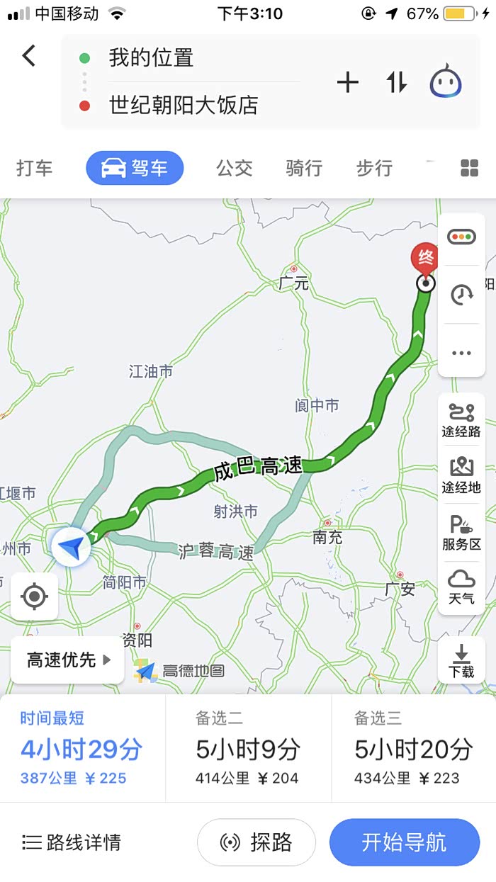 成都-南江-米仓山大坝森林公园景区--光雾山镇-十八月潭景区-成都。