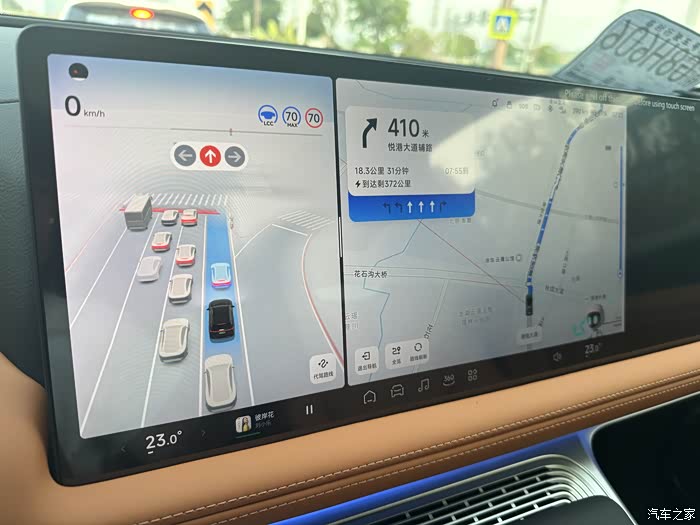 车机体验,感觉挺流畅的,现在是三联屏,副驾可以看视频,主驾这时候是看不清副驾屏的,出于安全考虑吧。有一次,听歌的时候出现了卡顿,当时有网络,很奇怪,听歌断断续续的,问了我的售后专员,说试一试重启大屏,果然,重启后,问题就解决了,重启大法好呀【各位鹏友,小鹏G9重启车机大屏方法:同时按住【语音键】+【静音键】保持5秒以上即可重启】