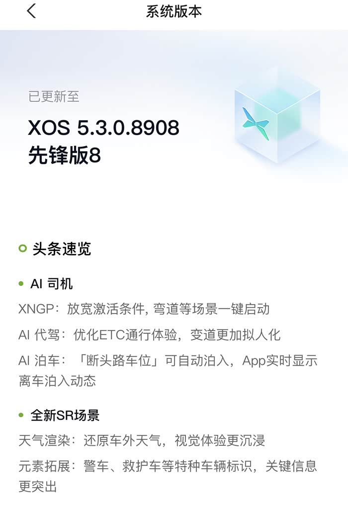 其实在提G9之前,这有已有一个油车迈腾,也有个短腿的纯电小鹏G3i,之所以买G9,就是看重它续航长,有700,看各种媒体测试,实际上能跑600没问题,三电做的比之前的车型好;更智能,有激光雷达的加持,今天系统刚升级了5.3.0.8908,城市XNGP开启条件放宽了,即使车速是0,也能启动。断头路车位,也可自动泊入(我在想,更新这个是不是某想之前的泊车呀,泊半天没进去,自己跑了);空间更大,很适合我们经常露营的玩家;内饰更豪华,其实G6出来的时候,看到755的续航,当时也是心动的,充电也快,空间也还行,惟一劝退的就是内饰,感觉相比现在的G3i并没有提升多少,所以当时也没选它。